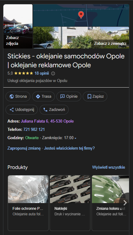 • pojawi się w tzw. wynikach lokalnych (obok mapki z firmami),